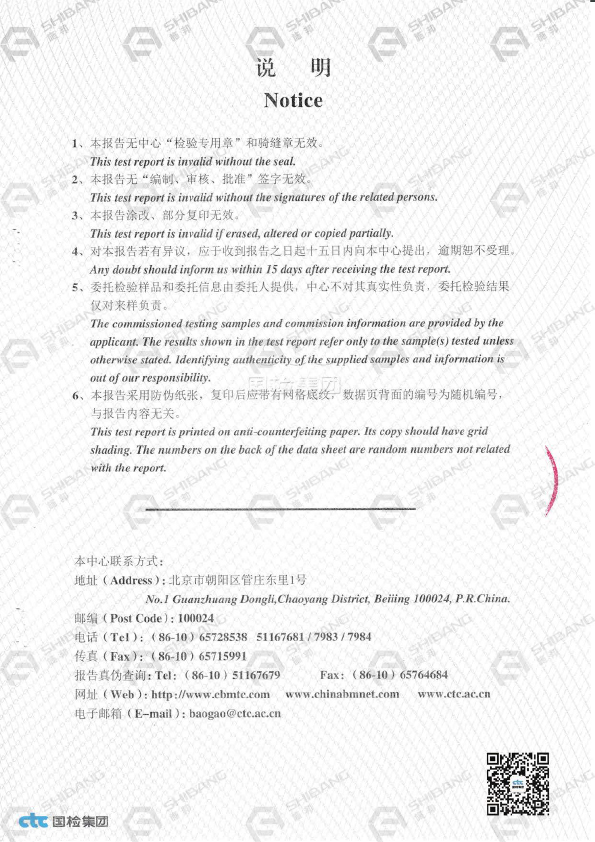 通过《我国建筑材料测试中心》检测