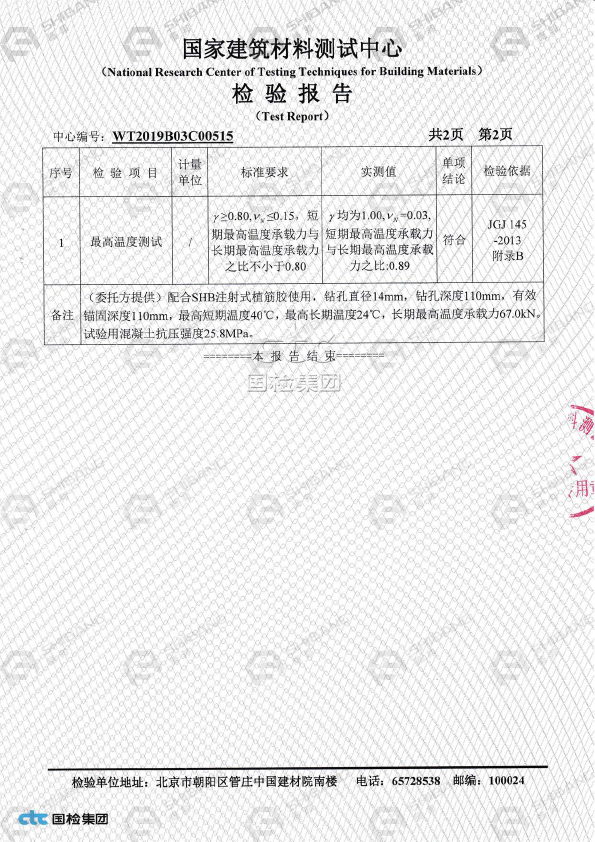 施邦研发出了特殊倒锥定型锚栓的专用植筋胶