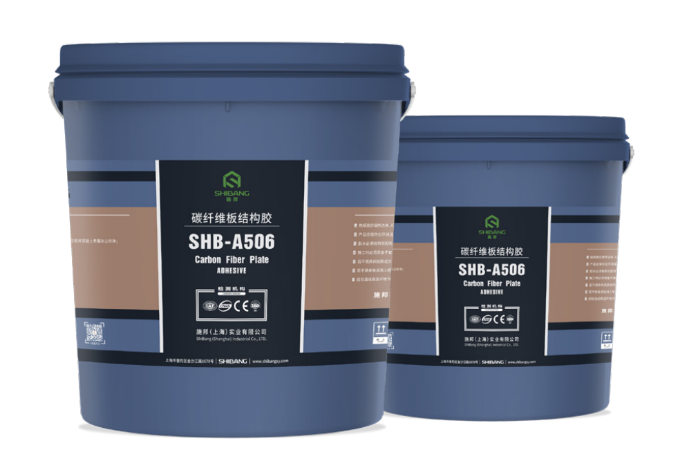 以SHB-A506碳纤维板结构胶为例,它是20kg一组,A、B双组份的配比混合为3:1,储存期一般为12 个月。它是环氧树脂双组份胶粘剂,与SHB-A502 碳纤维板配合,用于结构补强加固。是具有良好的触变性,不易出现流淌,易操作,强度高、韧性高,抗撕裂和抗冲击能力强,耐酸碱盐,抗震性能好,耐疲劳及长期应力。胶体呈现出的状态是膏状形式。