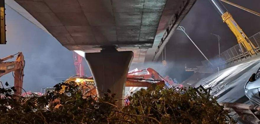 2、某些桥梁连接墩采用独柱墩+盖梁的构造形式,在超载车辆作用于连接墩位置时,盖梁的弯矩和剪力以及独柱墩的弯矩达到最不利荷载工况,当内力设计值远大于其截面承载力时,连接墩的盖梁或独柱墩会出现承载能力极限状态破坏,从而使上部梁体丧失边界支承条件,形成机动体系而发生梁体整体侧翻倾覆的事故。